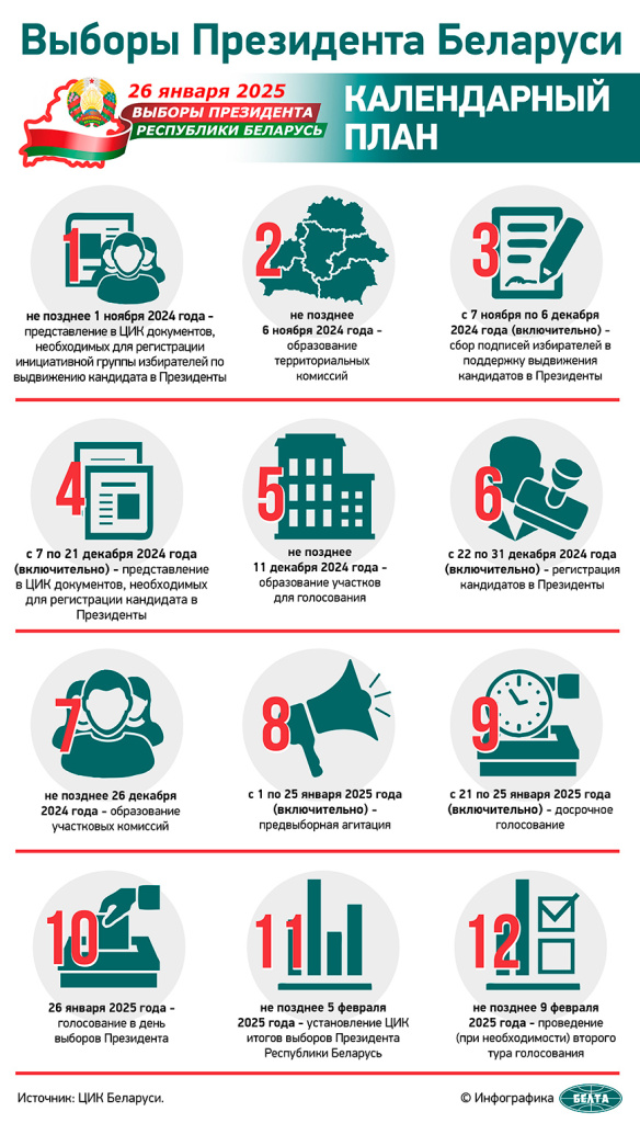 не позднее 5 февраля 2025 года — установление ЦИК итогов выборов Президента Республики Беларусь;